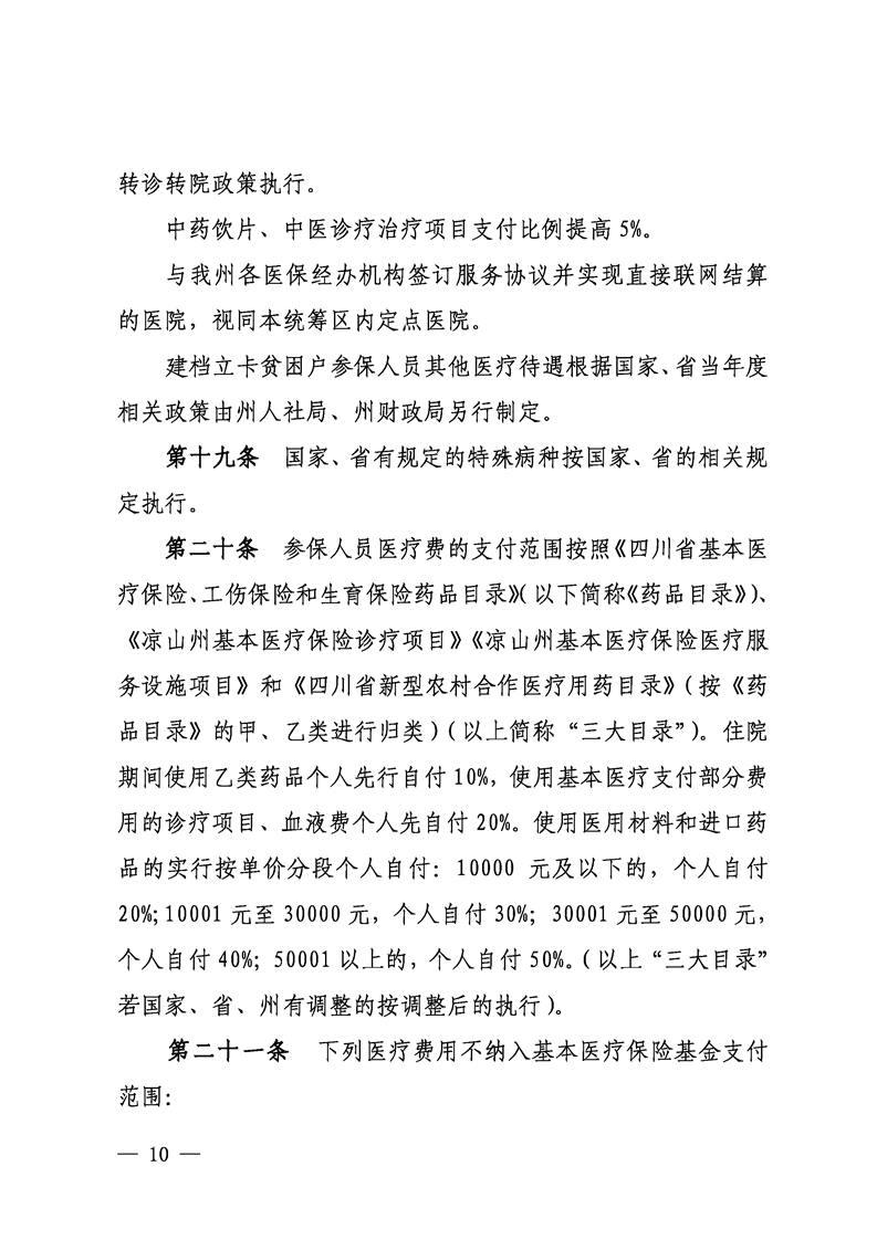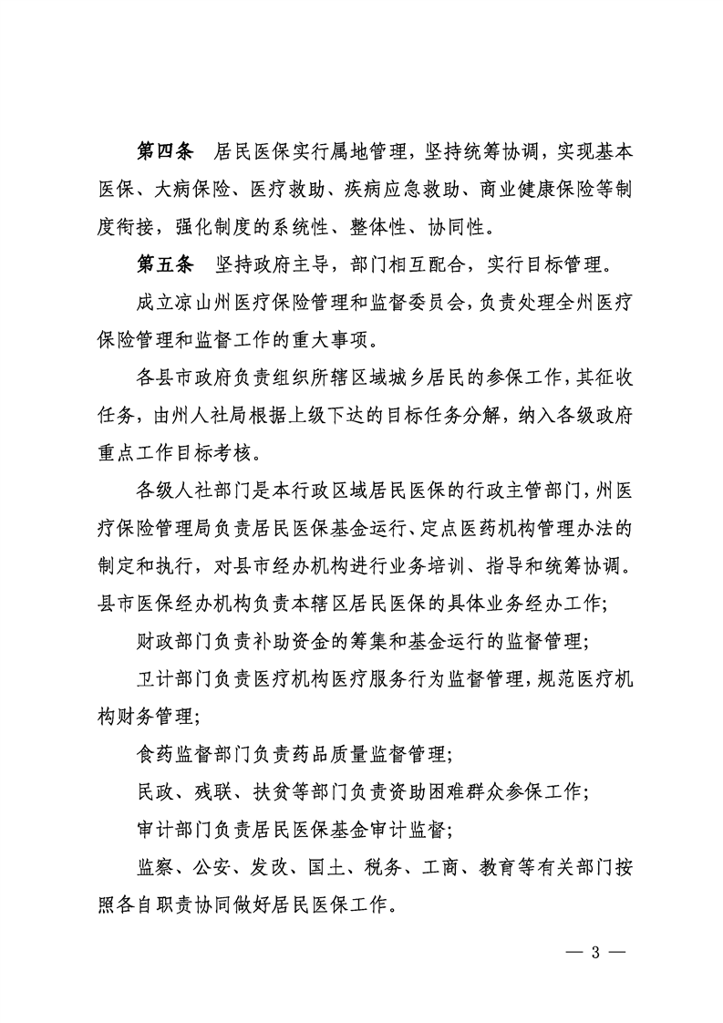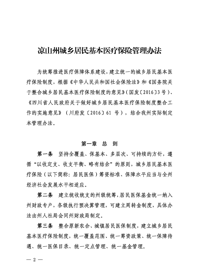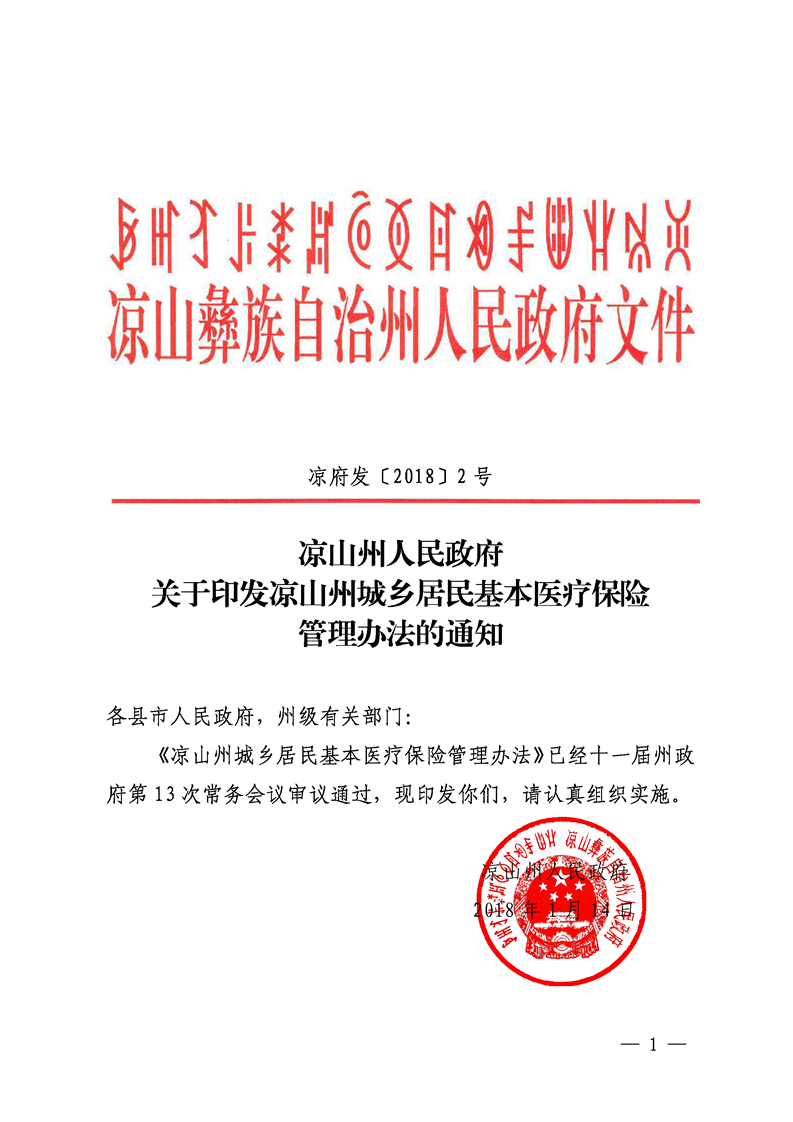 凉山州人民政府关于印发凉山州城乡居民基本医疗保险管理办法的通知