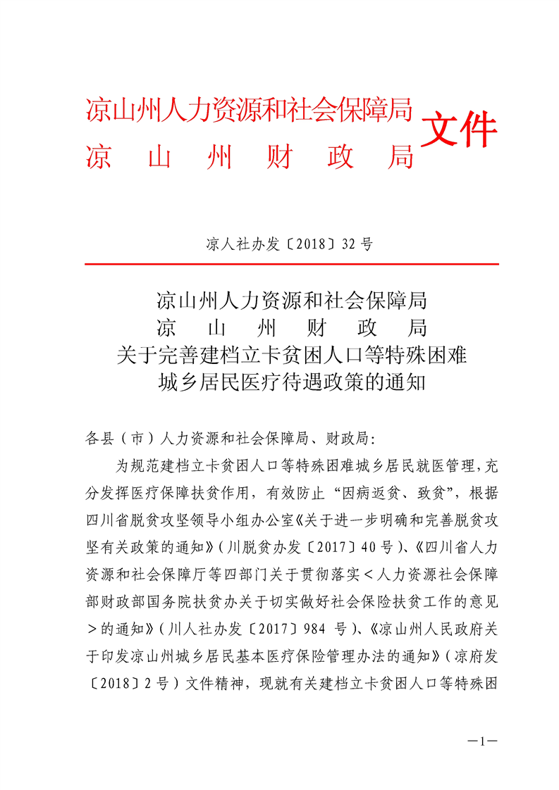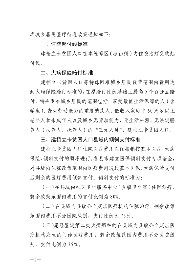 关于完善建档立卡贫困人口等特殊困难城乡居民医疗待遇政策的通知
