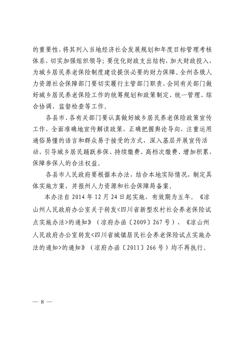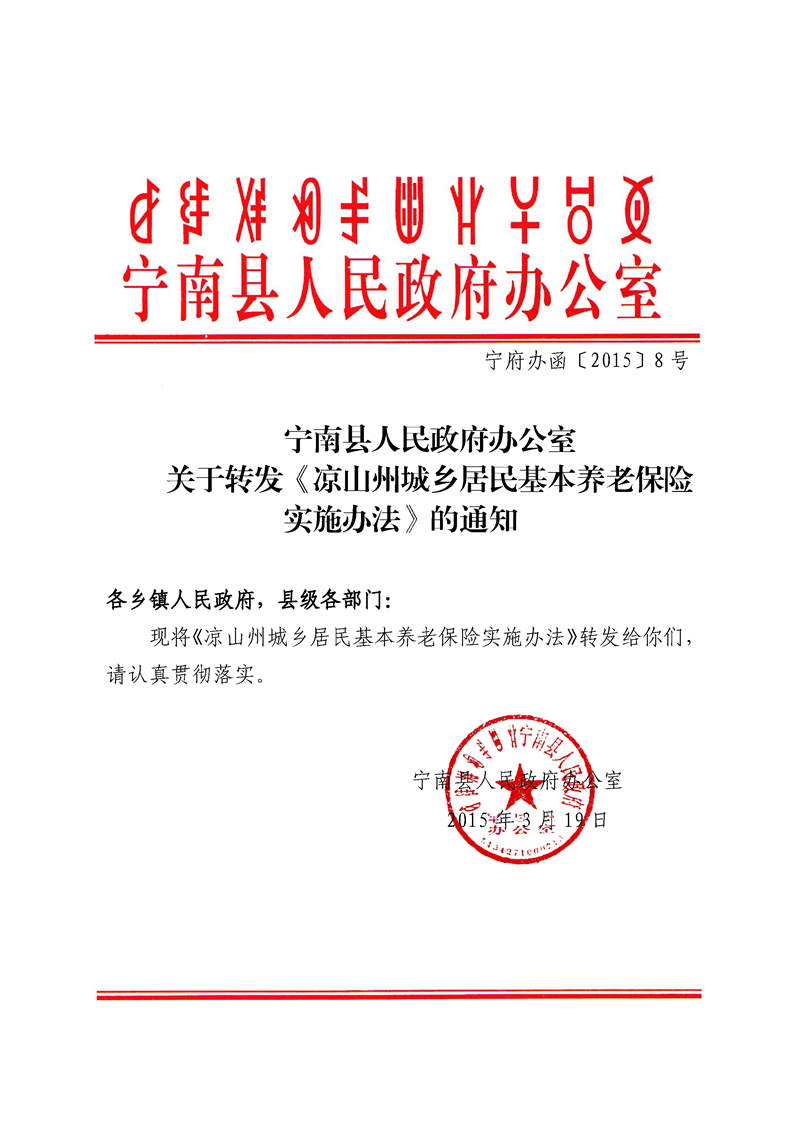 宁南县人民政府办公室关于转发《凉山州城乡居民基本养老保险实施办法》的通知