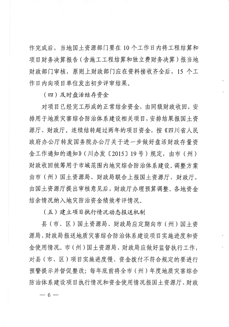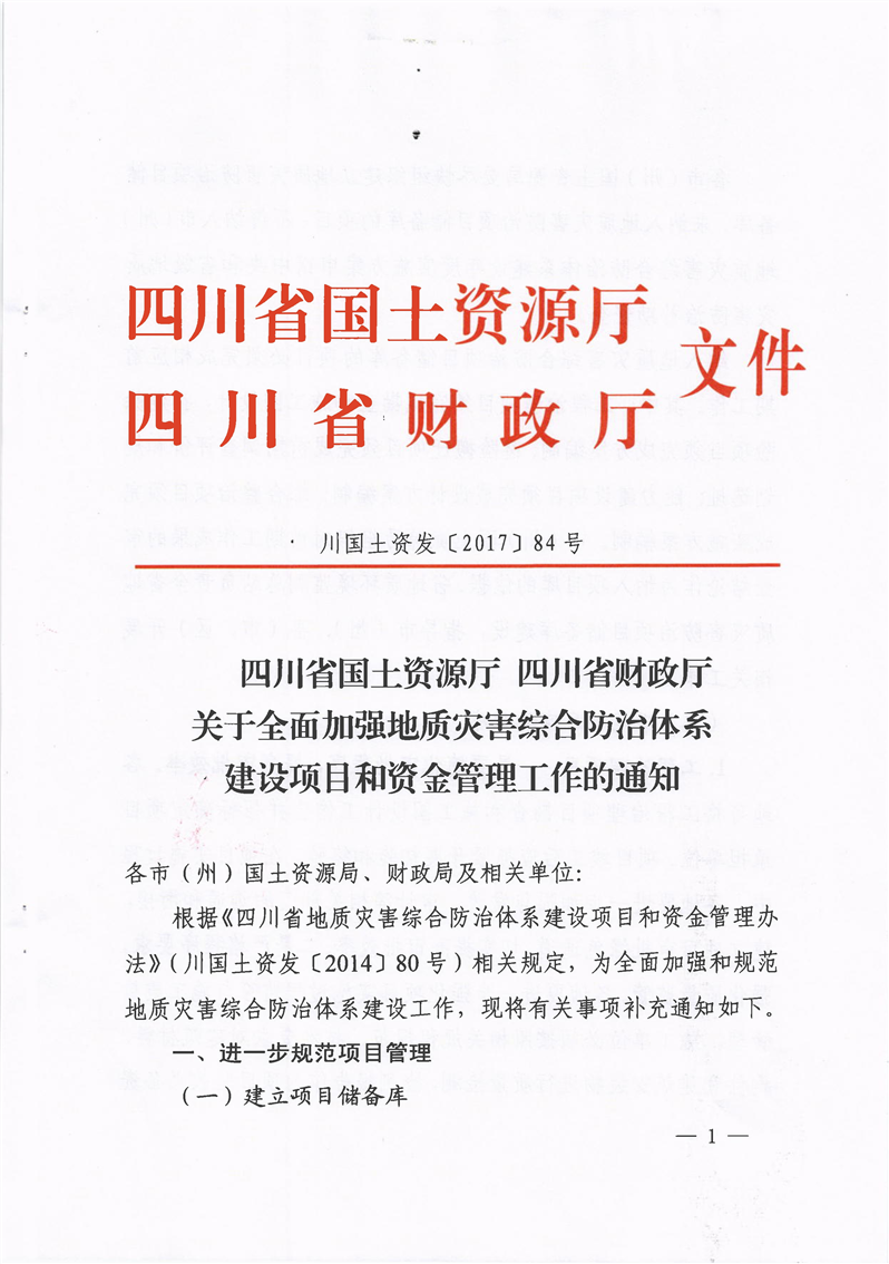 四川省国土资源厅四川省财政厅关于全面加强地质灾害综合防治体系建设项目和资金管理工作的通知