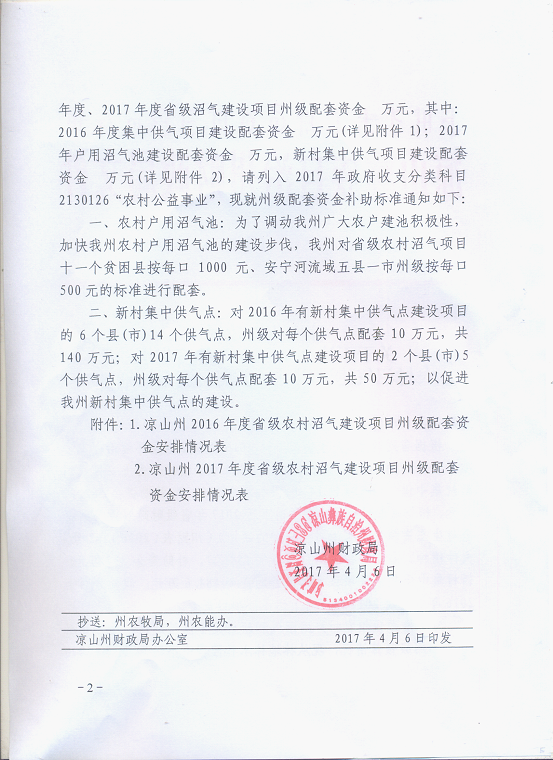 关于下达2016年-2017年省级农村沼气池建设项目州级配套资金的·通知