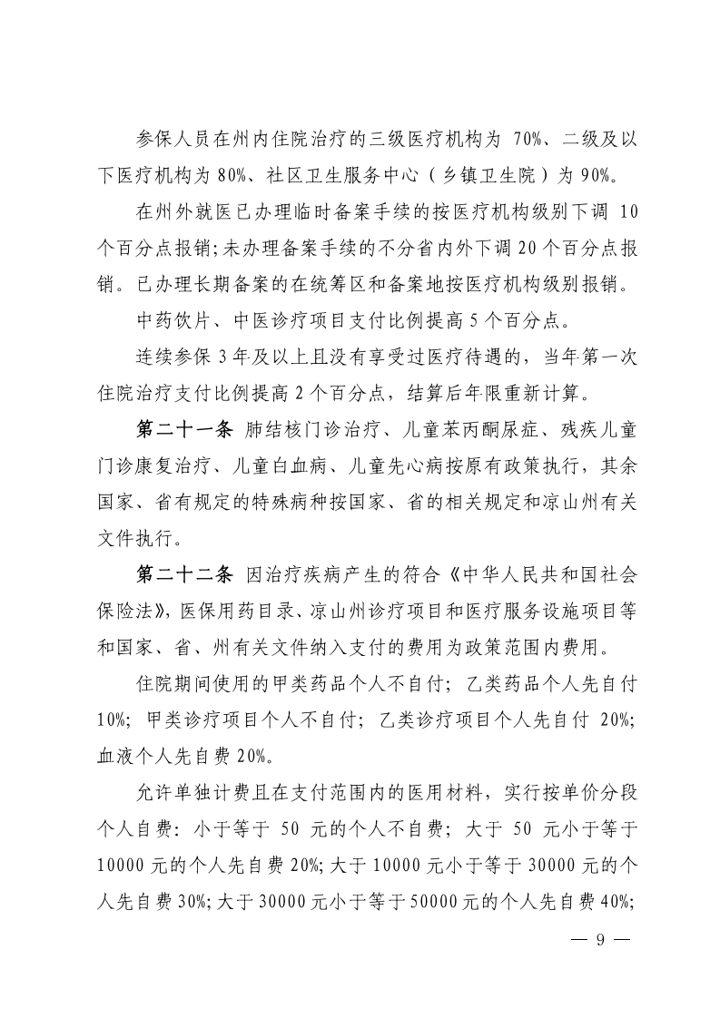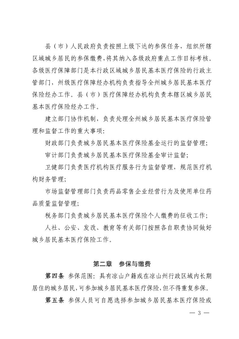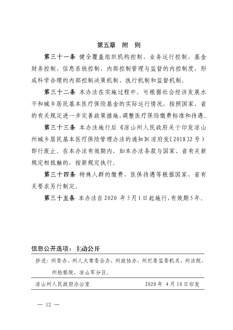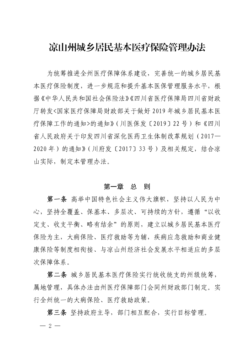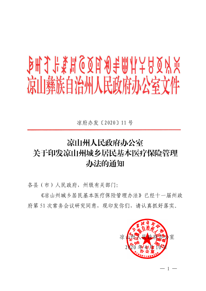 关于印发凉山州城乡居民基本医疗保险管理办法的通知
