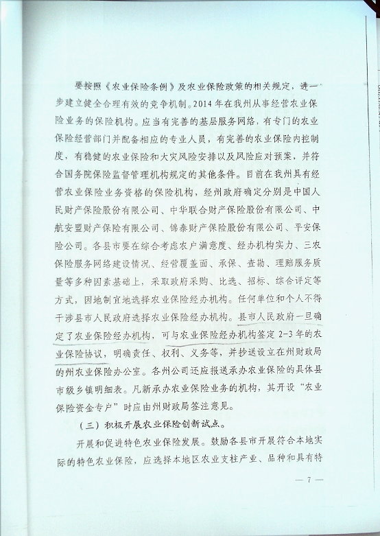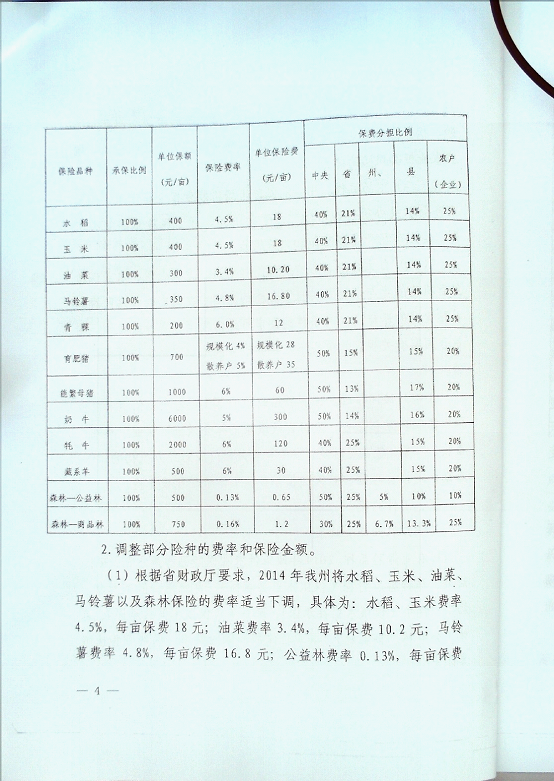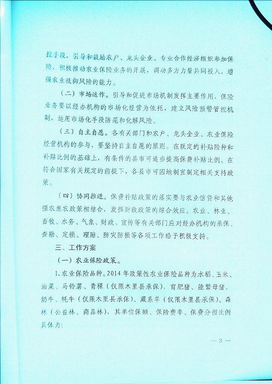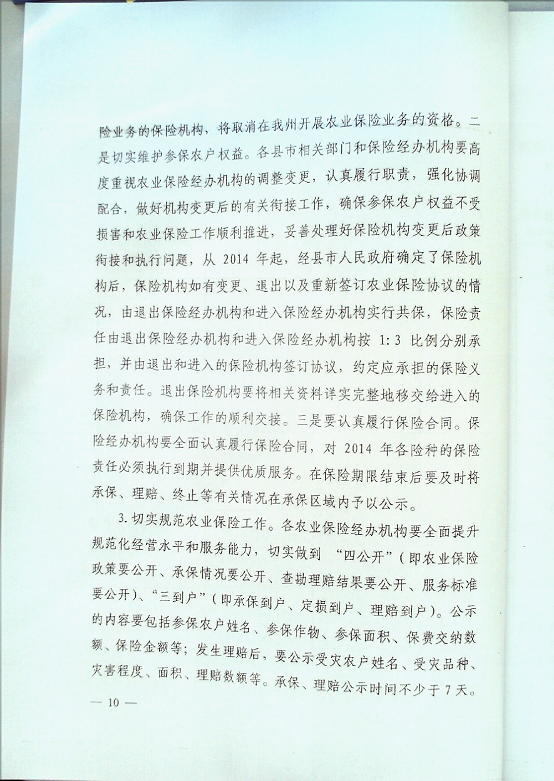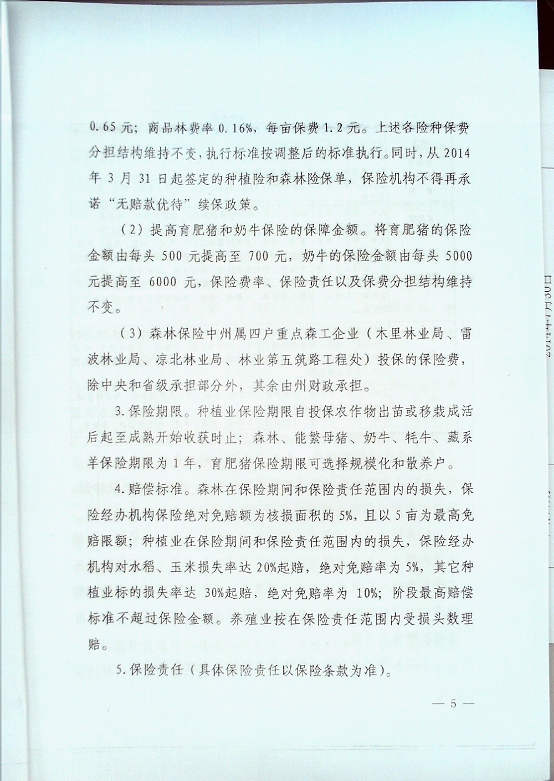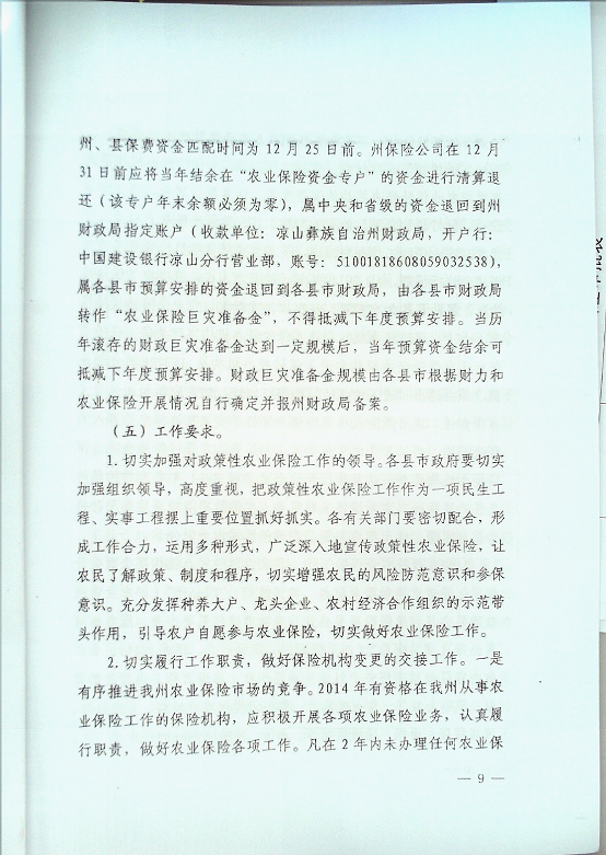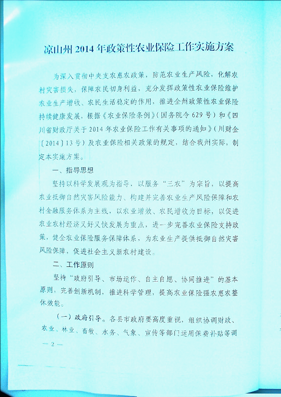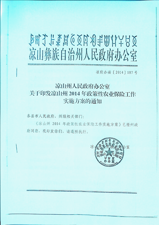 凉山州人民政府办公室关于印发2014年政策性农业保险工作实施方案的通知