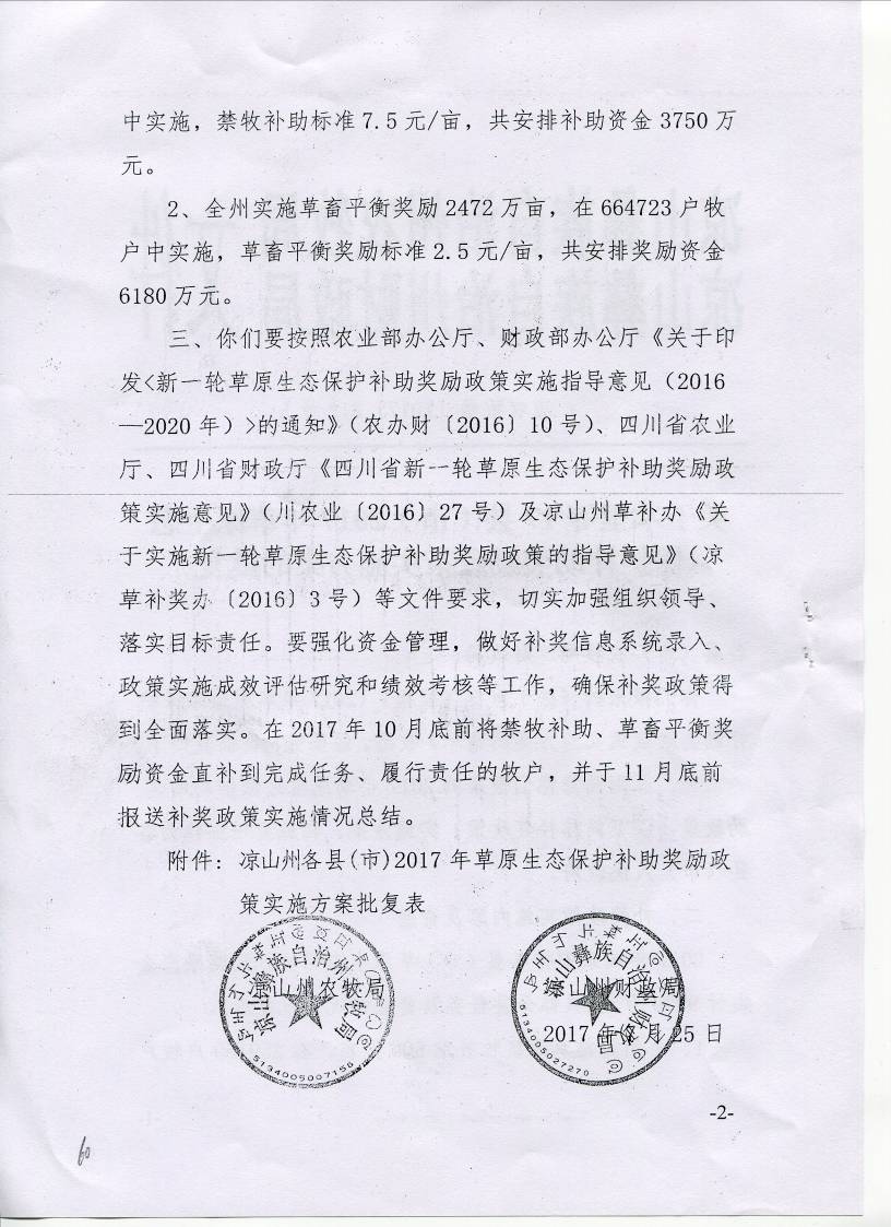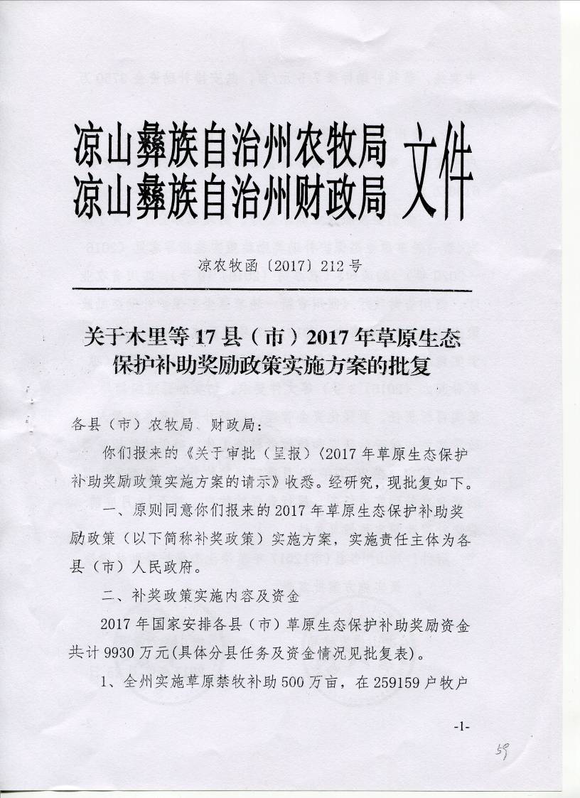关于木里等17个县(市)2017年草原生态保护补助奖励政策实施方案的批复