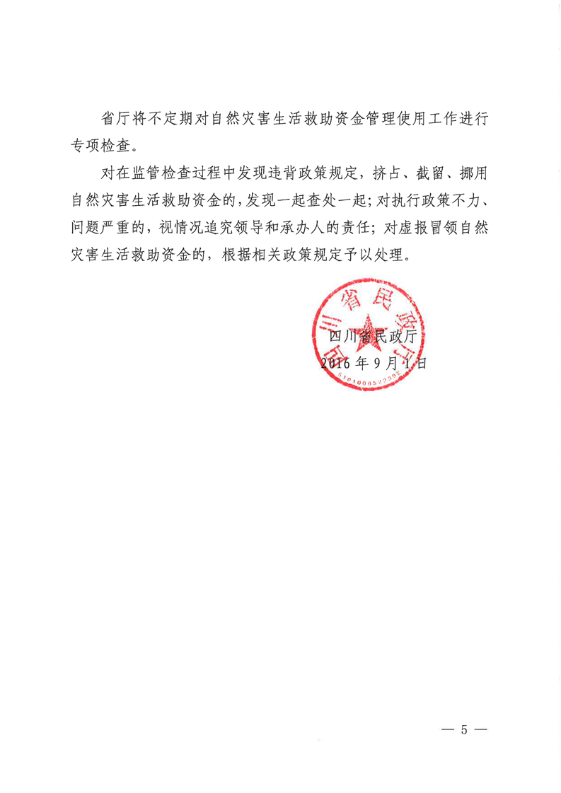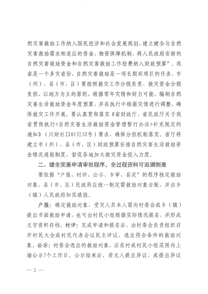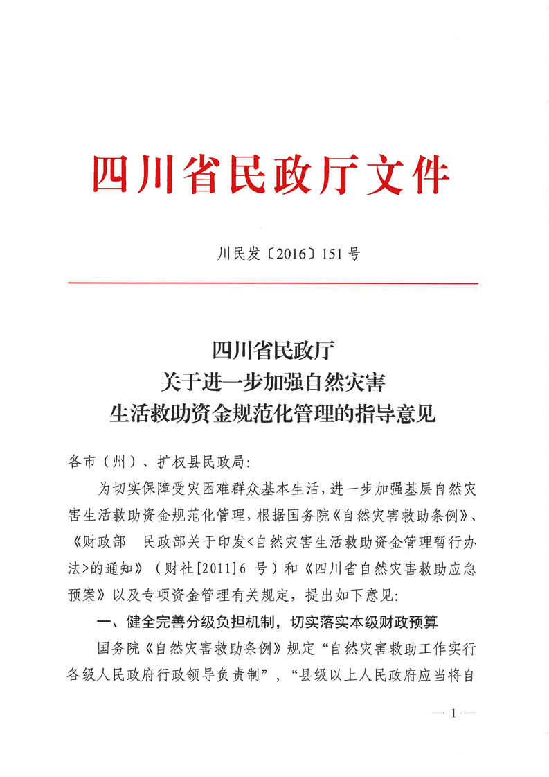 四川省民政厅关于进一步加强自然灾害生活救助资金规范化管理的指导意见