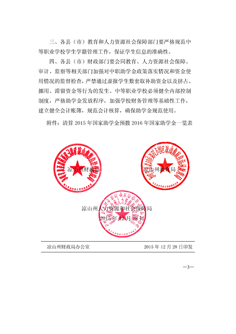 凉山州财政局、凉山州教育局、凉山州人力资源和社会保障局