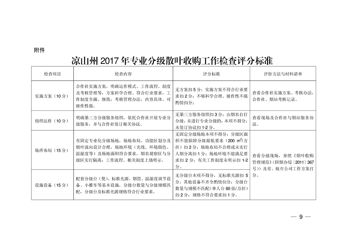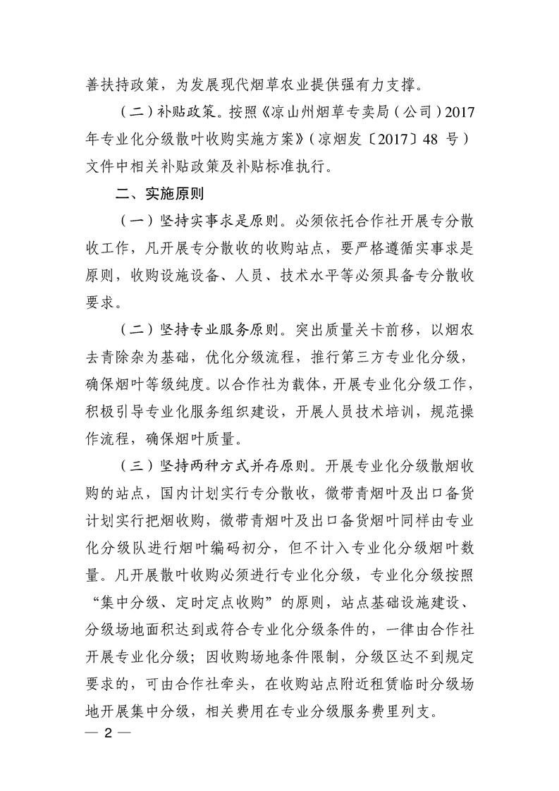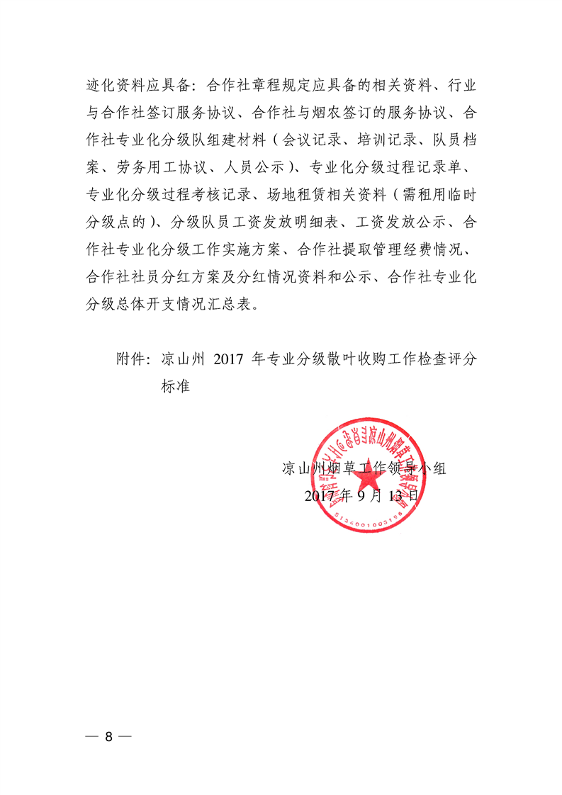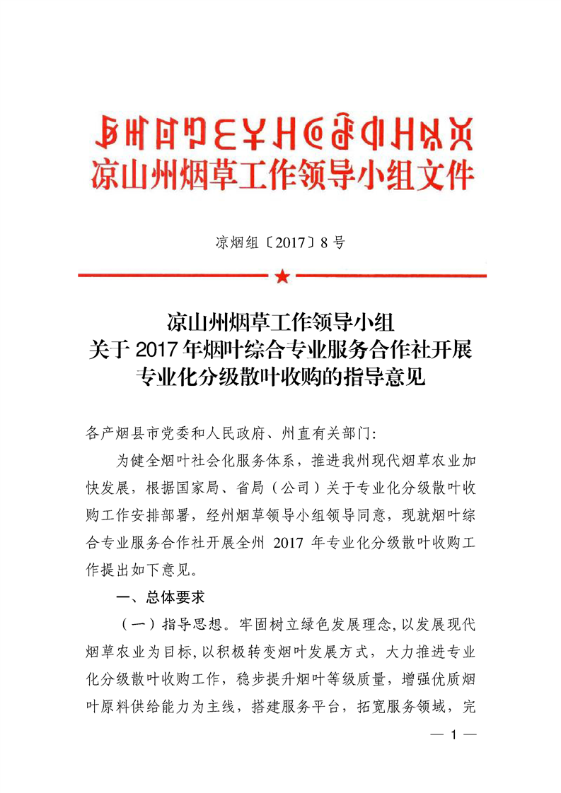 凉山州烟草工作领导小组关于2017年烟叶综合专业服务合作社开展专业化分级散叶收购的指导意见