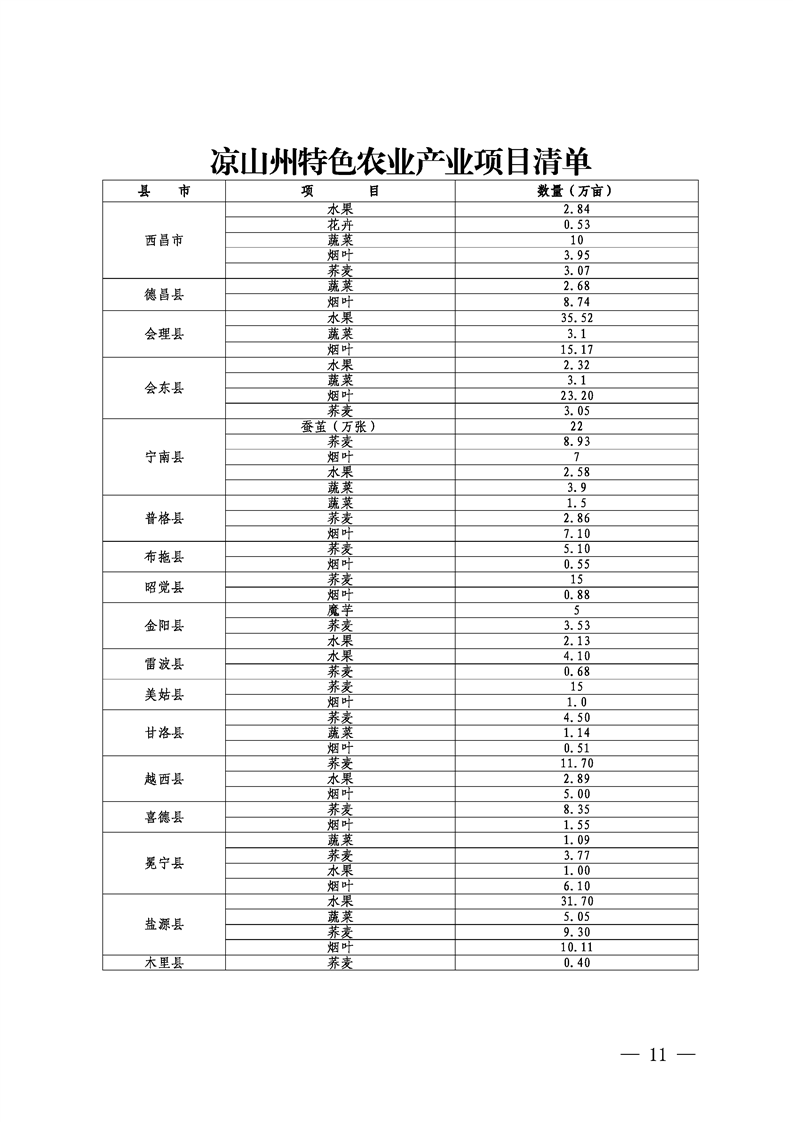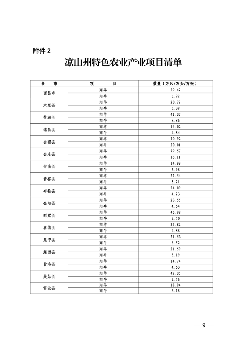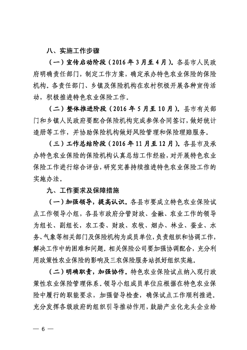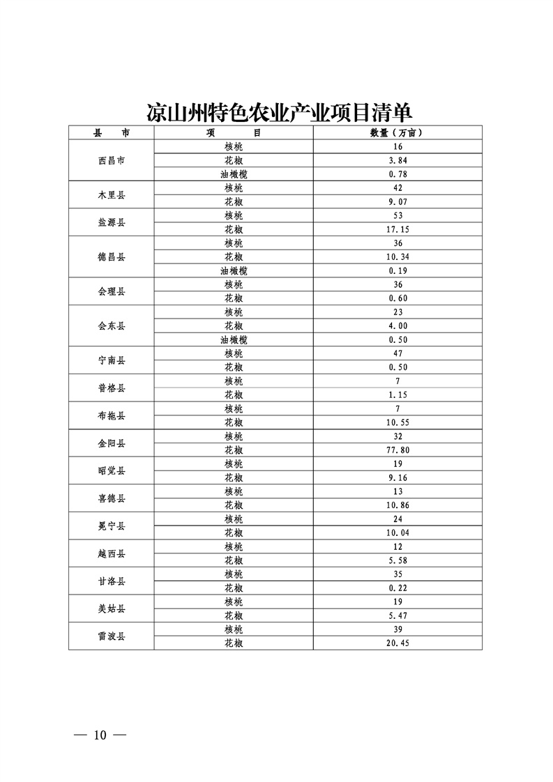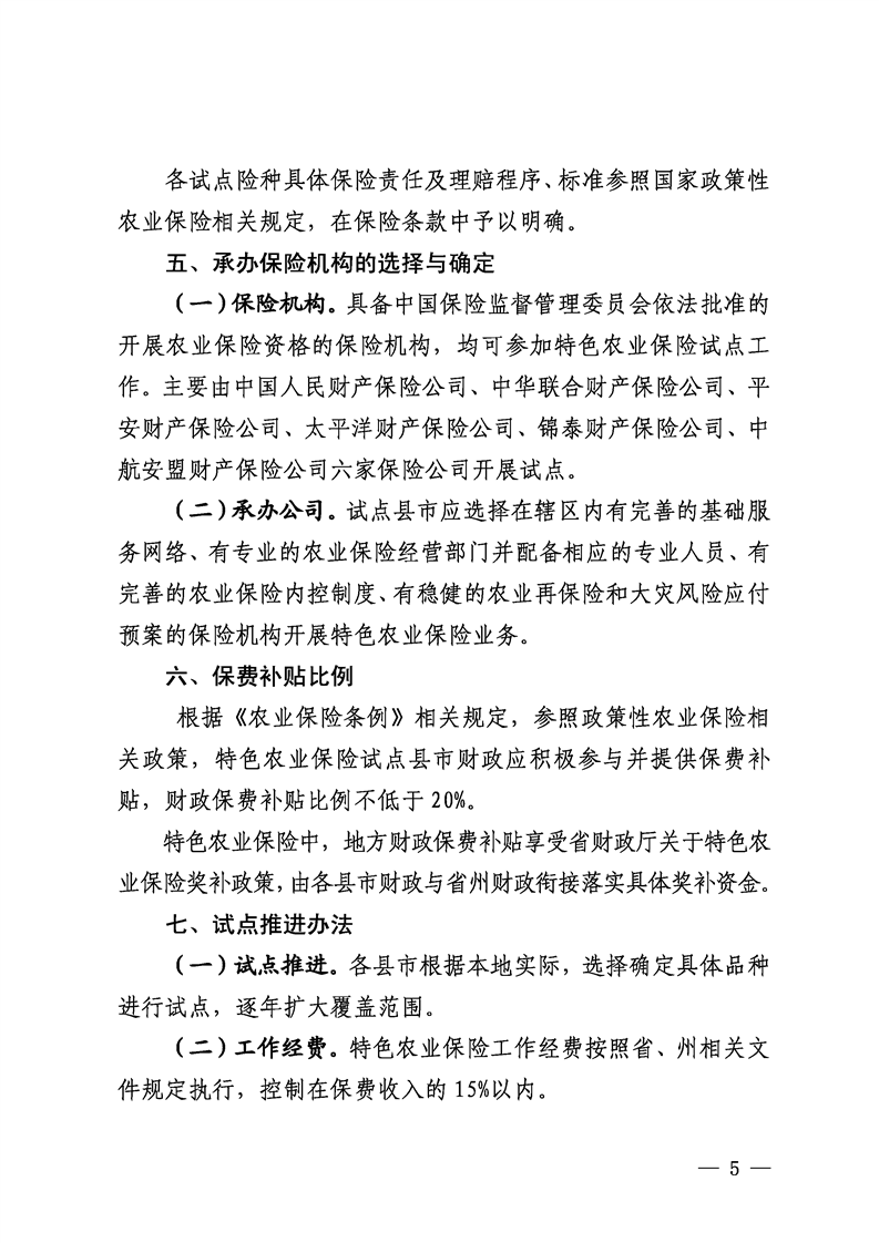 凉山州人民政府办公室关于印发凉山州特色农业保险试点工作实施方案的通知